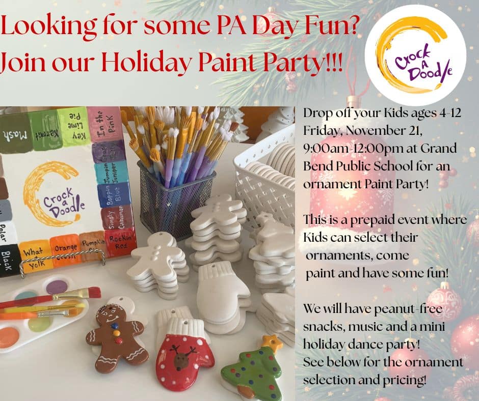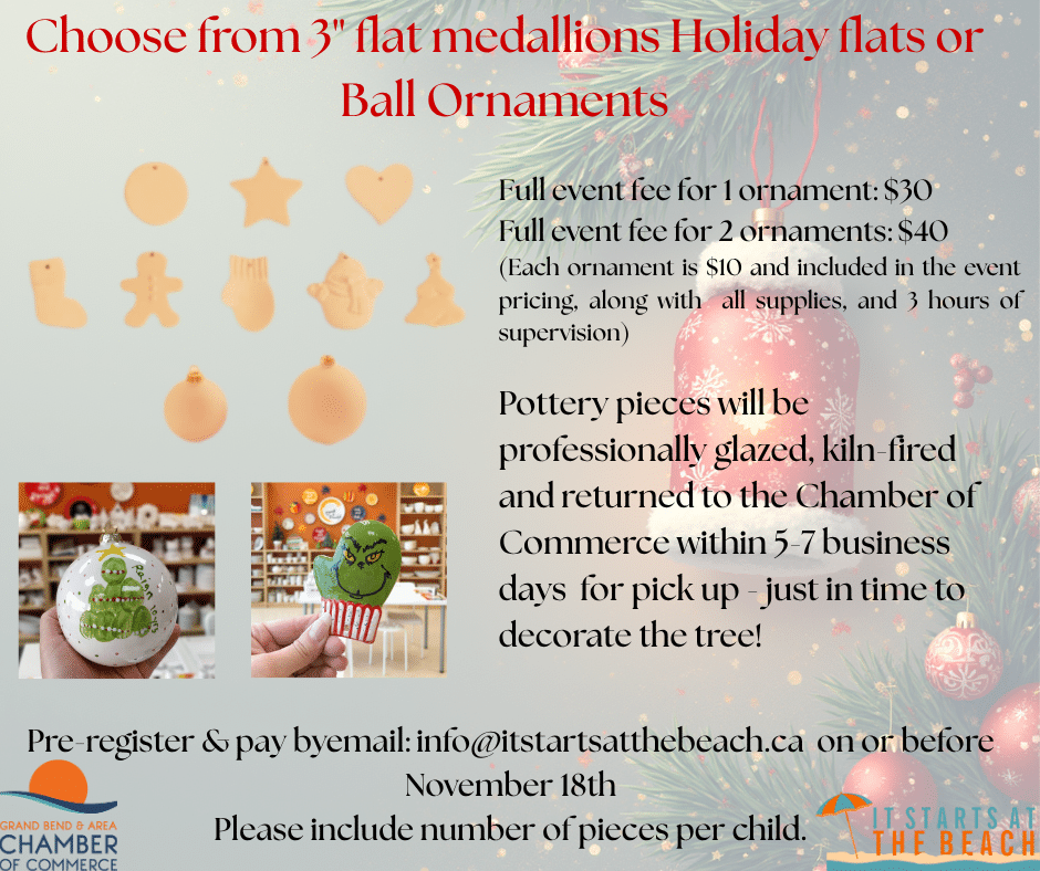 Drop off your kids, ages 4-12 at Grand Bend Public School for a fun holiday paint party – where they can paint their own Christmas tree ornaments!