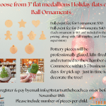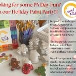 Kids can select from one or two ornaments to paint, there will be snacks and a holiday dance party.